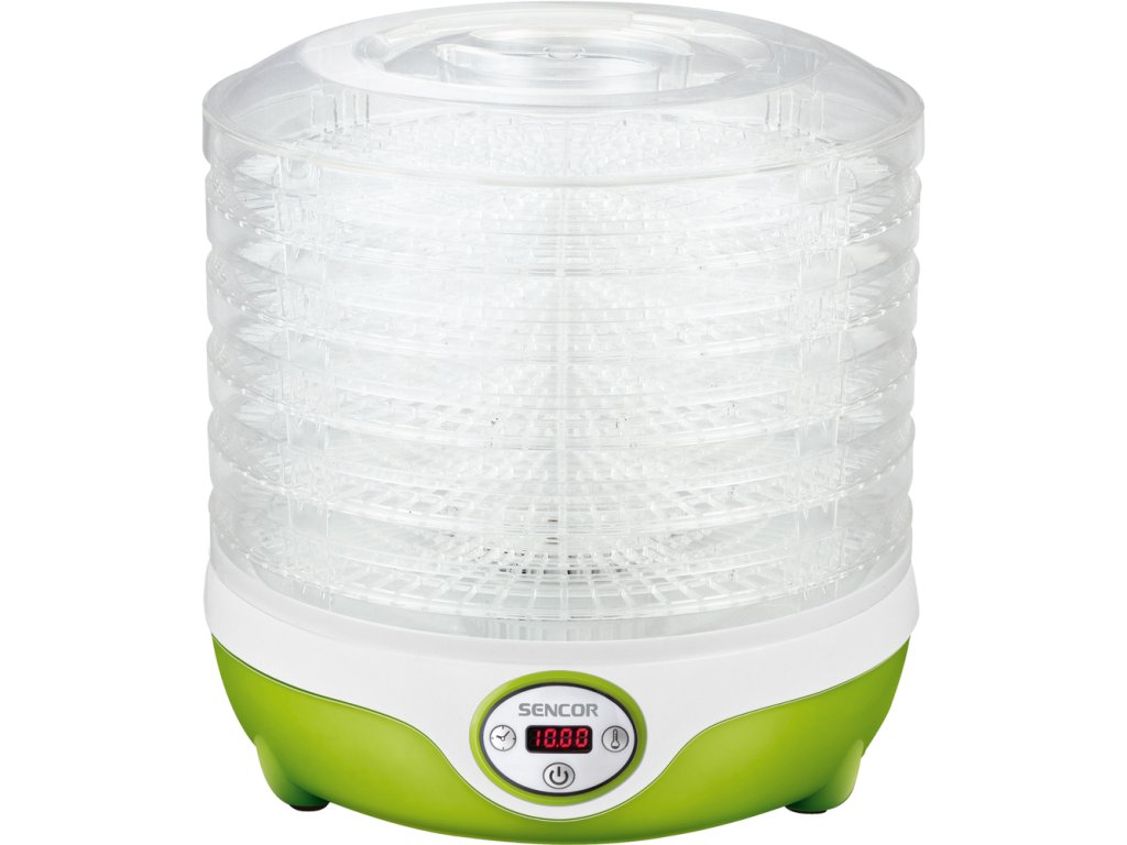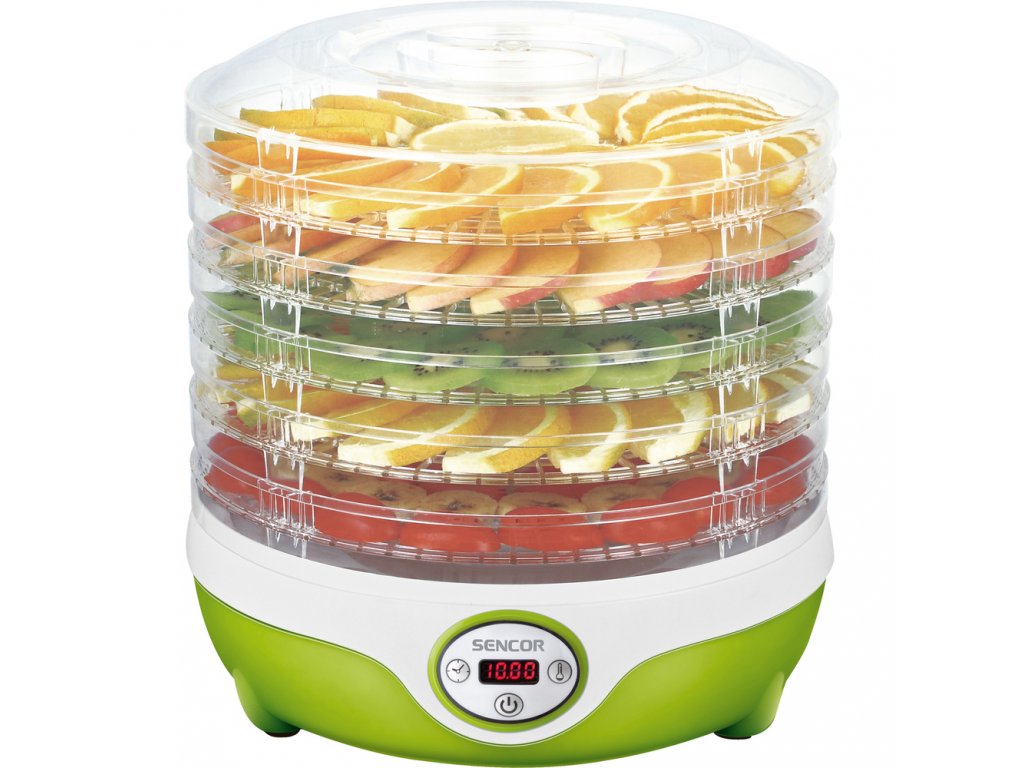 Kompaktní sušička potravin nabízí 5 sušících podnosů s nastavitelnou výškou